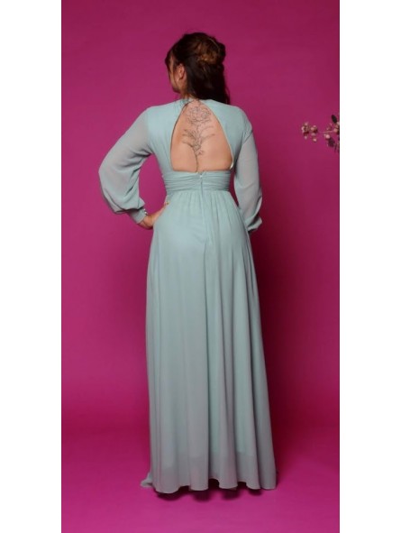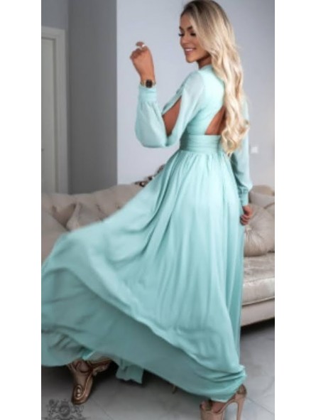 Questa bellezza è semplicemente irresistibile. Nonostante le maniche lunghe, ti sentirai a tuo agio grazie al leggero tessuto in chiffon. E la schiena scoperta non fa che rendere il look ancora più perfetto. Il materiale del vestito non è elastico, si chiude con una cerniera sul retro ed è rinforzato sul petto. Per qualsiasi evento... la semplicità ricordando lo stile delle donne dell' impero romano