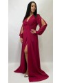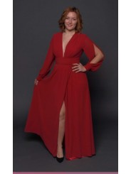Abito con spacco morbido e velato scollo a V manica lunga velata trasparente con apertura centrale e vita fasciata