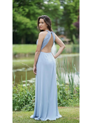 spettacolare abito impero in chiffon  con scollo all'americana e schiena scoperta