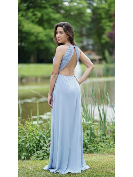 adorato da chi preferisce una scollatura discreta ma con una schiena da urlo .E stupendo, le sue pieghe sul corpo e la vita segnata renderanno la tua silhouette divina...la sua gonna  dal volume medio é perfetta per creare una bella caduta e non segnare il giro vita. ha un elastico in vita sul retro quindi sarà super comodo  adatto per qualsiasi evento in tanti colori