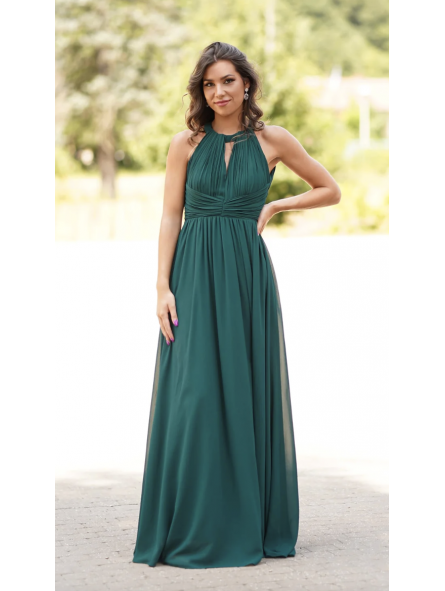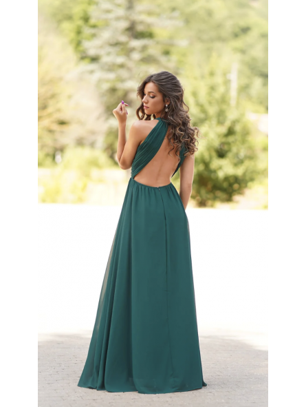 spettacolare abito impero in chiffon  con scollo all'americana e schiena scoperta