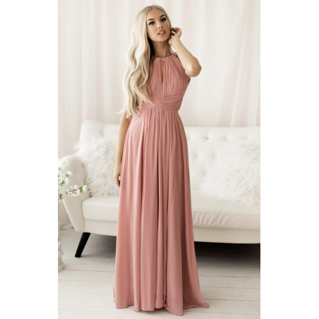 spettacolare abito impero in chiffon con scollo all'americana e schiena scoperta