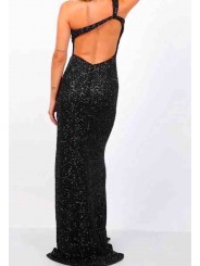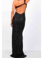 abito sirena paillettato con spacco laterale e schiena scoperta