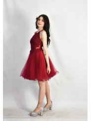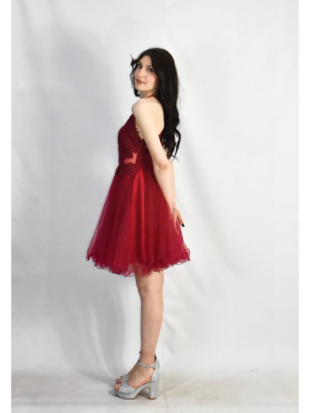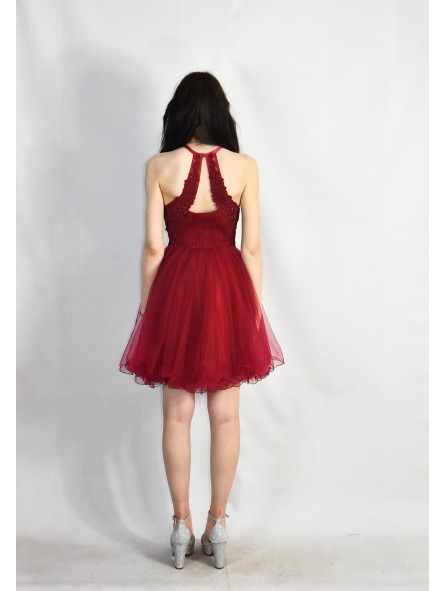 Frizzante e raffinato, l’abito corto in tulle e pizzo è un concentrato di energia dall’effetto tattoo con ricami tono su tono, coppette push up e gonna in tulle. Perfetto per un cocktail, per festeggiare un compleanno o per andare ad un matrimonio. Con accessori rock quali giubbotto in pelle e biker o converse può essere declinato ad un uso meno formale.