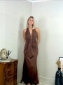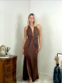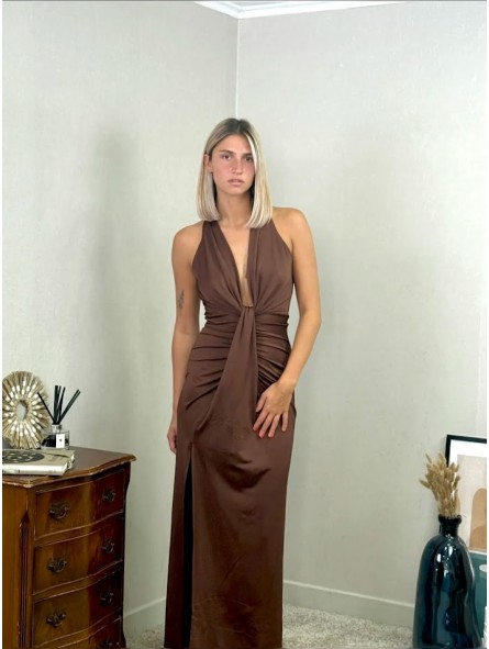 Abito da cocktail lungo e scollato con spacco, effetto sirena.