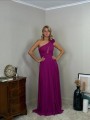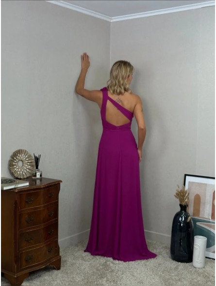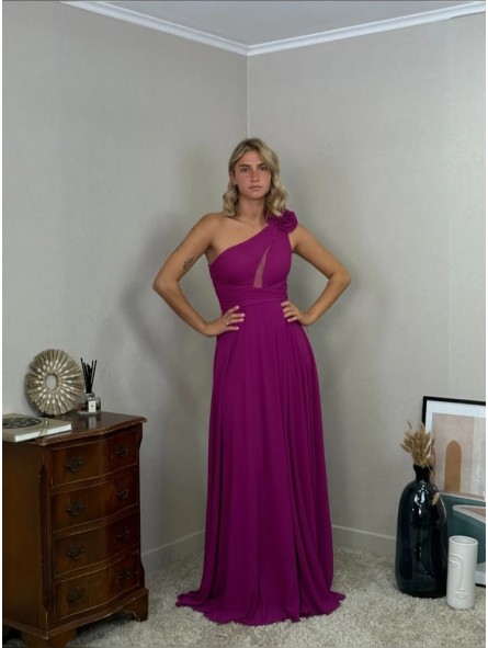 Abito lungo formale asimmetrico  con fiori staccabili e spacco