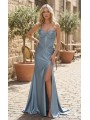 Vestito da cerimonia elegante e raffinato perfetto anche per un diciottesimo compleanno. Realizzato in raso questo abito ha un corpetto con stecche e coppe finemente decorate con strass. Dietro questo modello è regolabile con lacci. Il tutto è reso ancora più perfetto grazie ad uno spacco super sensuale.